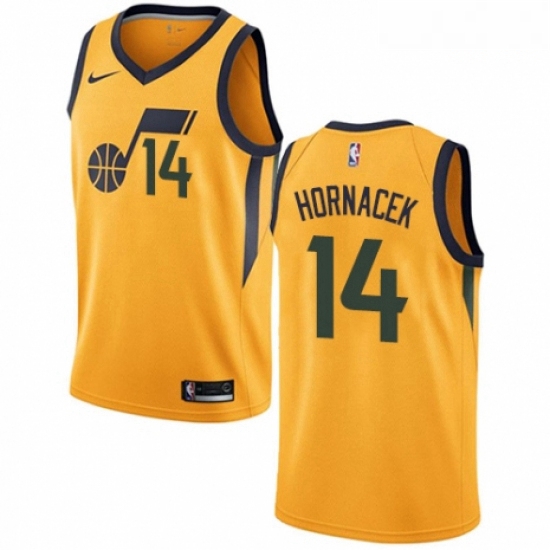 Mens Nike Utah Jazz 14 Jeff Hornacek Swingman Gold NBA Jersey Statement Edition