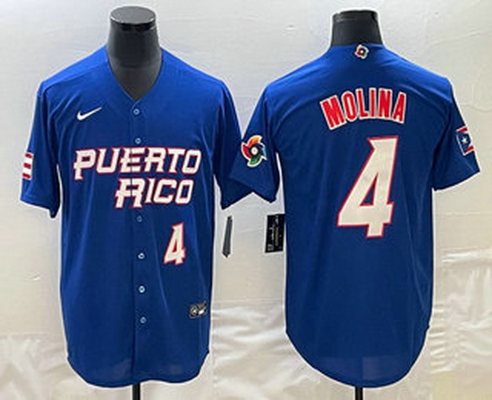 Home>MLB>2023 World Baseball Classic>Puerto Rico>Men's Puerto Rico Baseball #4 Yadier Molina Number 2023 Blue World Baseball Classic Stitched Jersey