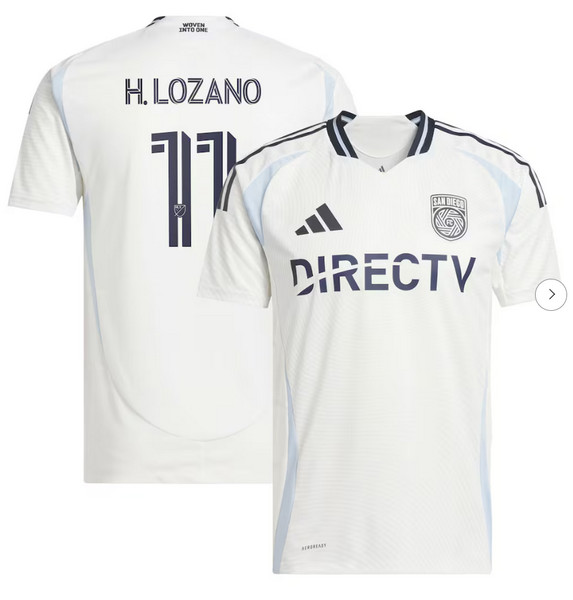 Home>Soccer>MLS Soccer Jerseys>San Diego FC>Mens San Diego FC Hirving Lozano adidas White 2025 Woven Into One Replica Player Jersey