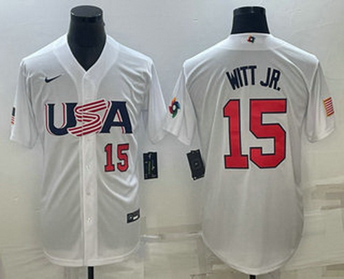 Home>MLB>2023 World Baseball Classic>USA>Men's USA Baseball #15 Bobby Witt Jr Number 2023 White World Baseball Classic Replica Stitched Jersey