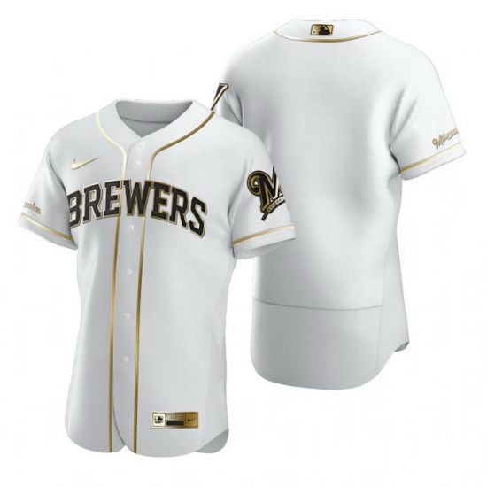 Home>MLB>Milwaukee Brewers>Men>Milwaukee Brewers Blank White Nike Mens Authentic Golden Edition MLB Jersey