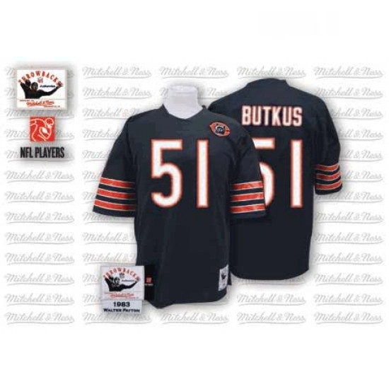 Mitchell and Ness Chicago Bears 51 Dick Butkus Blue Team Color Big Number with Bear Patch Authentic Throwback NFL Jersey