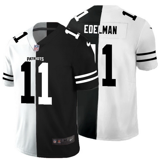 Home>NFL>New England Patriots>Men>New England Patriots 11 Julian Edelman Men Black V White Peace Split Nike Vapor Untouchable Limited NFL Jersey