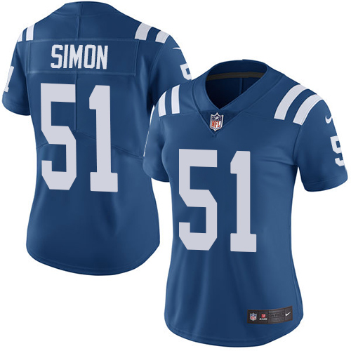 Nike Colts #51 John Simon Royal Blue Team Color Womens Stitched NFL Vapor Untouchable Limited Jersey