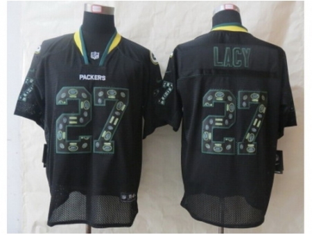Nike Green Bay Packers 27 Eddie Lacy Black Elite Lights Out Fashion NFL Jersey