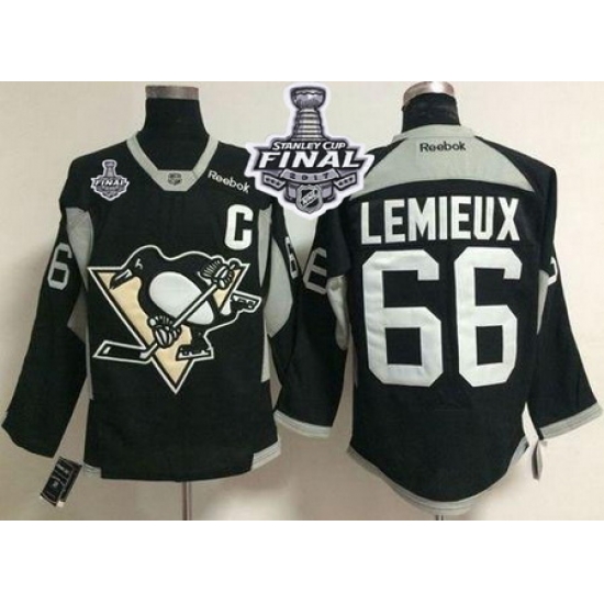 Penguins #66 Mario Lemieux Black Practice 2017 Stanley Cup Final Patch Stitched NHL Jersey