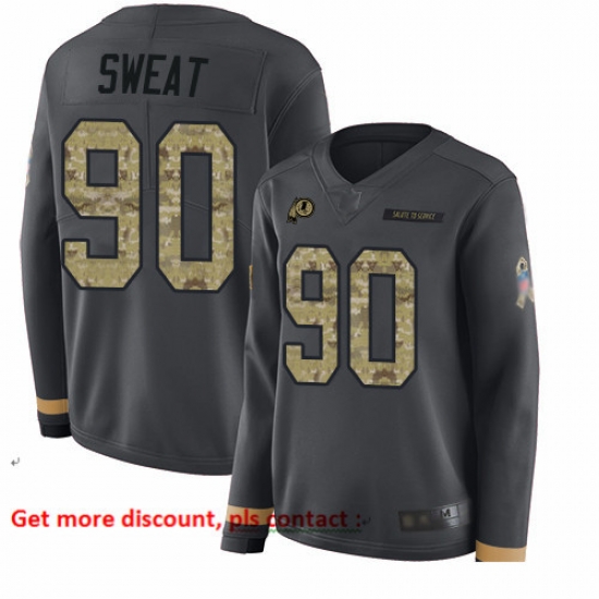 Home>NFL>Washington Commanders>Women>Redskins 90 Montez Sweat Anthracite Salute to Service Women Stitched Football Limited Therma Long Sleeve Jersey