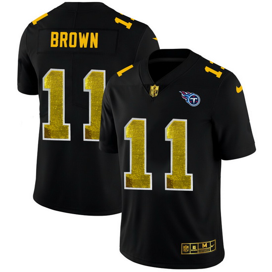 Home>NFL>Tennessee Titans>Men>Tennessee Titans 11 A J Brown Men Black Nike Golden Sequin Vapor Limited NFL Jersey