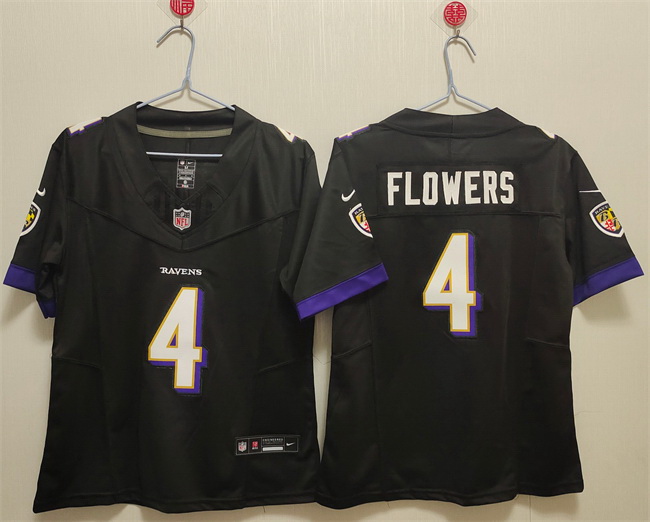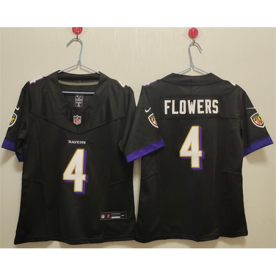 Women Baltimore Ravens 4 Zay Flowers Black Vapor Football Jersey