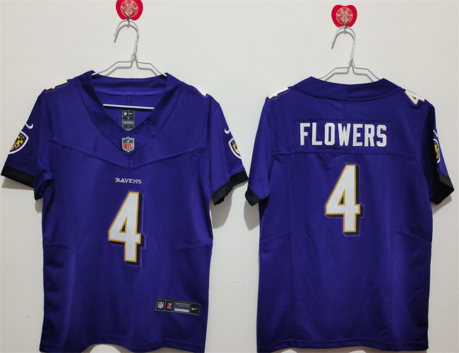Women Baltimore Ravens 4 Zay Flowers Purple Vapor Football Jersey