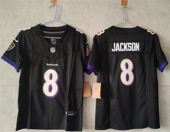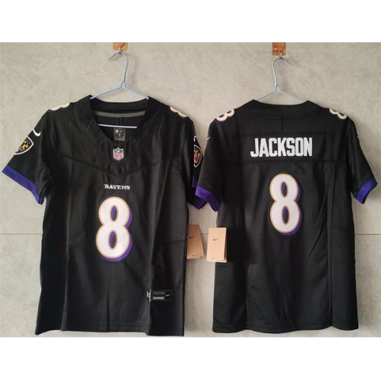 Women Baltimore Ravens 8 Lamar Jackson Black Vapor Football Jersey