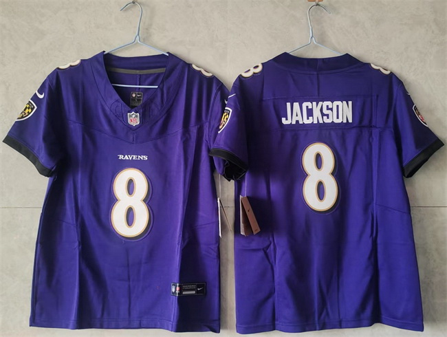 >Women Baltimore Ravens 8 Lamar Jackson Purple Vapor Football Jersey