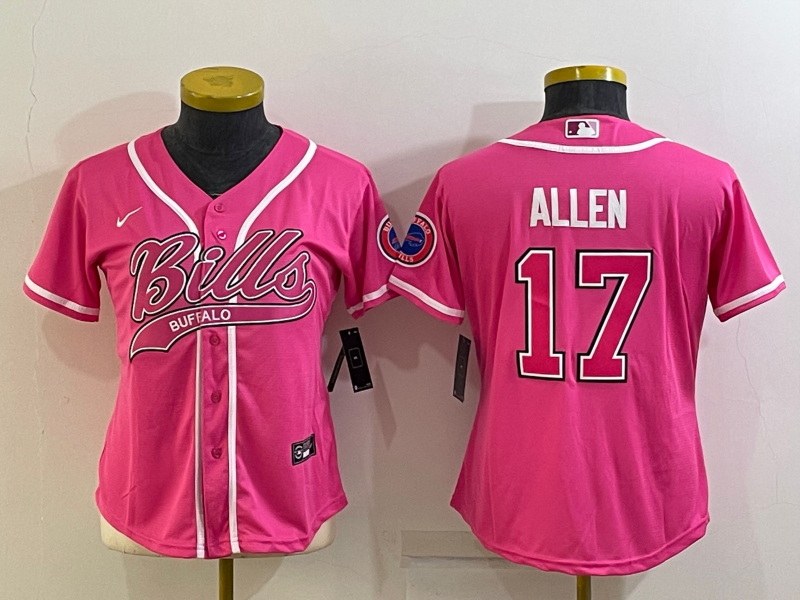 Women Buffalo Bills 17 Josh Allen Pink With Patch Cool Base Stitched Baseball Jersey
