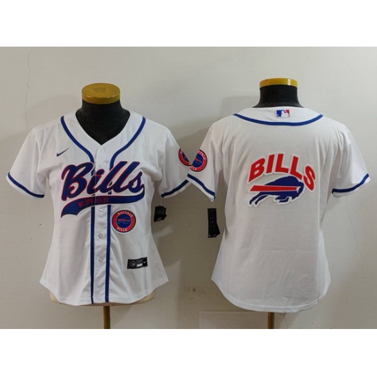 Women Buffalo Bills White Team Big Logo With Patch Cool Base Stitched Baseball Jersey
