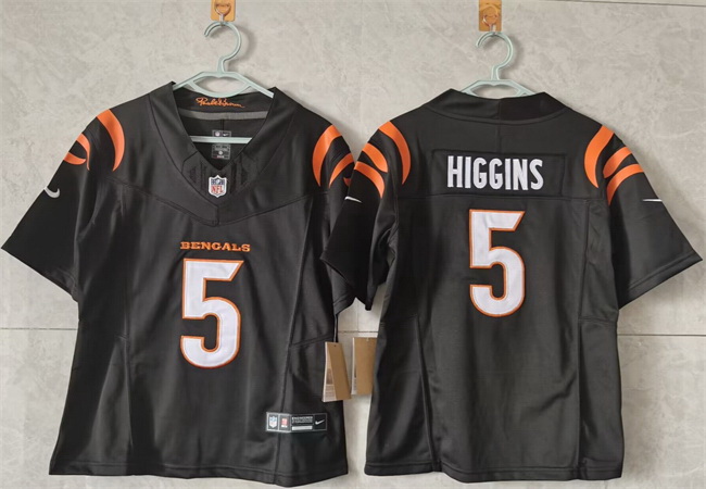 Home>NFL>Cincinnati Bengals>Women>Women Cincinnati Bengals 5 Tee Higgins Black F U S E Stitched Vapor Football Jersey