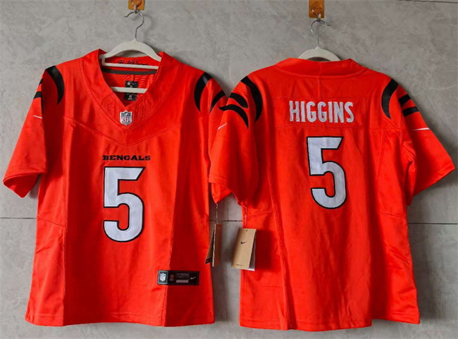 Home>NFL>Cincinnati Bengals>Women>Women Cincinnati Bengals 5 Tee Higgins Orange F U S E Stitched Vapor Football Jersey