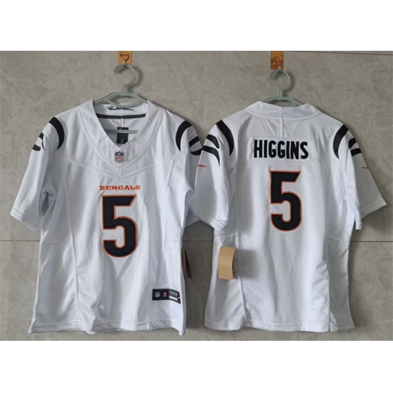 Women Cincinnati Bengals 5 Tee Higgins White F U S E Stitched Vapor Football Jersey
