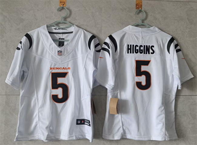 Home>NFL>Cincinnati Bengals>Women>Women Cincinnati Bengals 5 Tee Higgins White F U S E Stitched Vapor Football Jersey