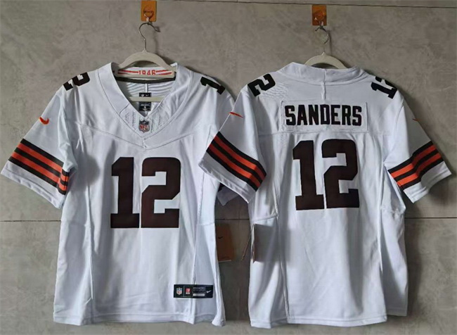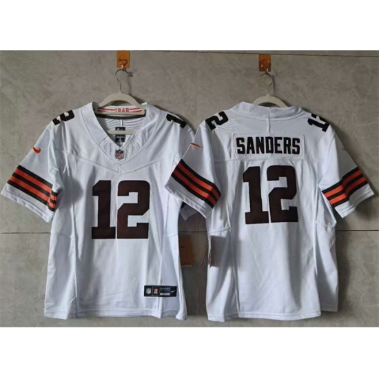 Women Cleveland Browns 12 Shedeur Sanders White 2024 F U S E Stitched Jersey