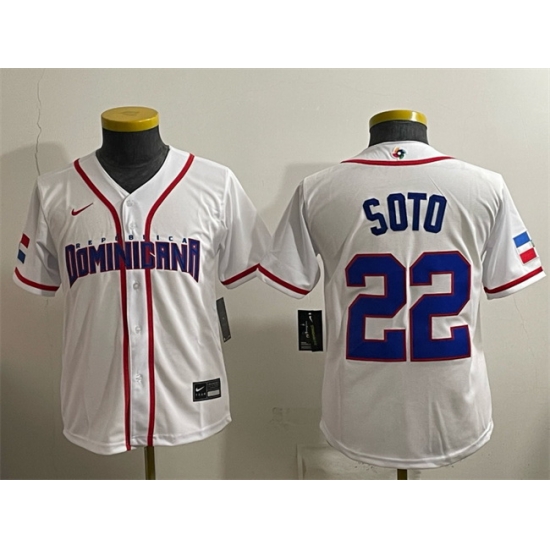 Home>MLB>2026 World Baseball>Dominican Republic>Women Dominican Republic Baseball 22 Juan Soto White 2026 World Baseball Classic Home Stadium Stitched Baseball Jersey Run Small