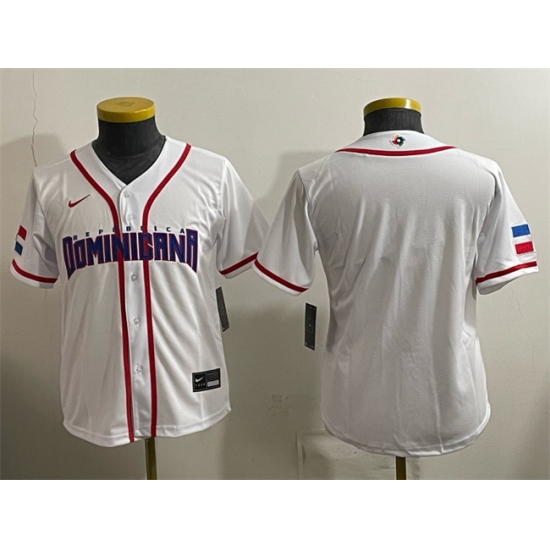 Home>MLB>2026 World Baseball>Dominican Republic>Women Dominican Republic Baseball Blank White 2026 World Baseball Classic Home Stadium Stitched Baseball Jersey Run Small