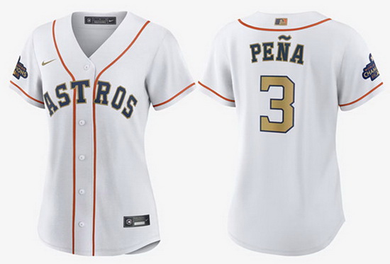 Home>MLB>Houston Astros>Women>Women Houston Astros 3 Jeremy Pe F1a White 2023 Gold Collection With World Serise Champions Patch Stitched Jersey