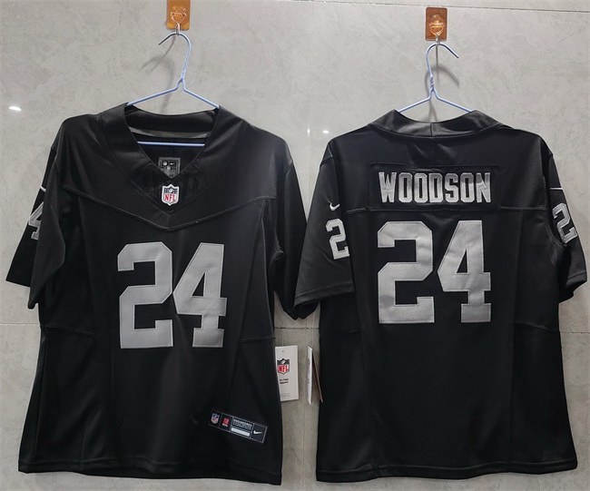 Home>NFL>Las Vegas Raiders>Women>Women Las Vegas Raiders 24 Charles Woodson Black 2025 F U S E Vapor Stitched Jersey