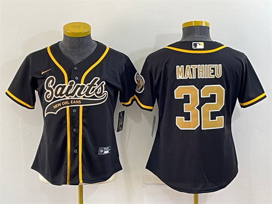 Home>NFL>New Orleans Saints>Women>Women New Orleans Saints 32 Tyrann Mathieu Black With Patch Cool Base Stitched Baseball Jersey