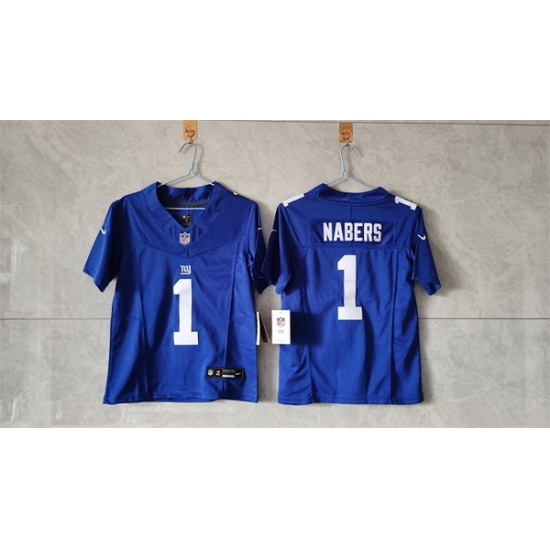 Women New York Giants 1 Malik Nabers Blue F U S E Vapor Stitched Jersey