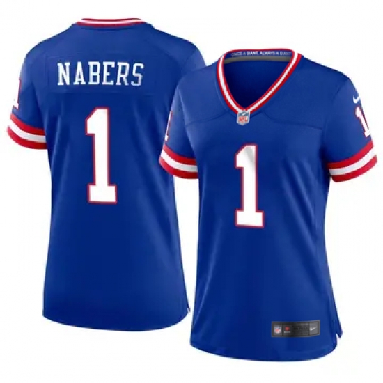 Home>NFL>New York Giants>Women>Women New York Giants 1 Malik Nabers Royal 2024 F U S E Throwback Limited Stitched Jersey