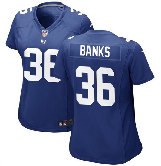 Women New York Giants 36 Deonte Banks Blue Stitched Game Jersey