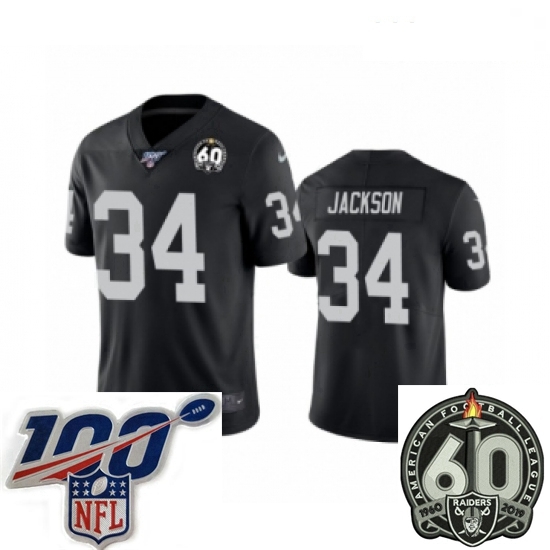 Women Oakland Raiders #34 Bo Jackson Black 60th Anniversary Vapor Untouchable Limited Player 100th Season Football Jersey