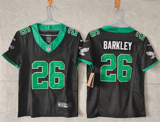 >Women Philadelphia Eagles 26 Saquon Barkley Black Throwback F U S E Vapor Untouchable Limited Stitched Football Jersey