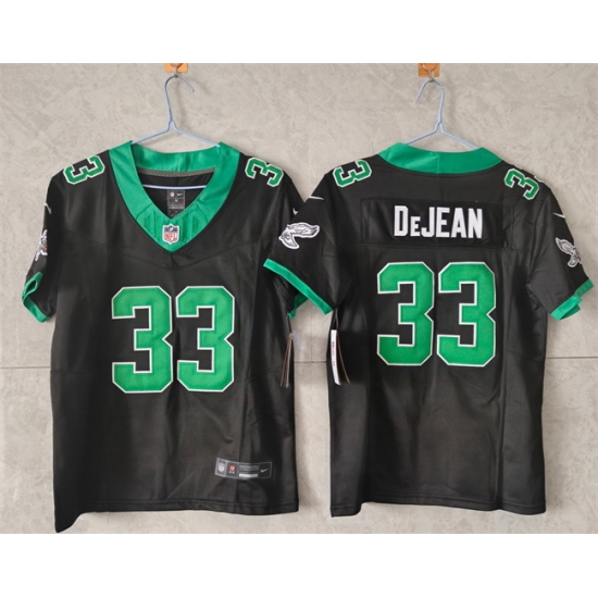 >Women Philadelphia Eagles 33 Cooper DeJean Black Throwback F U S E Vapor Untouchable Limited Stitched Football Jersey