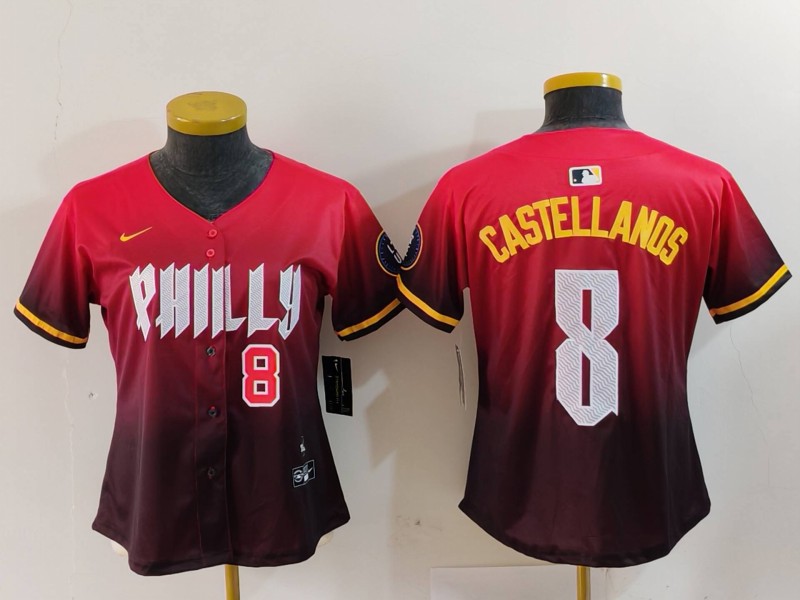 Home>MLB>Philadelphia Phillies>Women>Women Philadelphia Phillies 8 Nick Castellanos Red 2024 City Connect Limited Stitched Baseball Jersey 6
