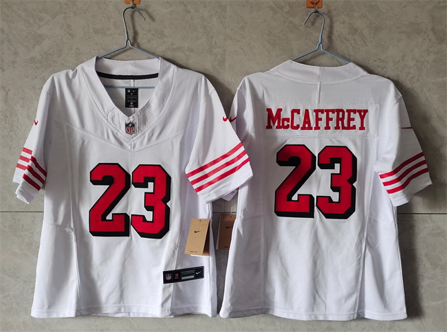 Home>NFL>San Francisco 49ers>Women>Women San Francisco 49ers 23 Christian McCaffrey New White F U S E Vapor Untouchable Stitched Jersey