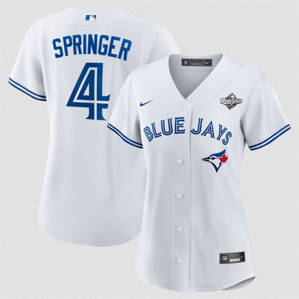 Home>MLB>Toronto Blue Jays>Women>Women Toronto Blue Jays 4 George Springer White 2025 World Series Home Cool Base Stitched Baseball Jersey