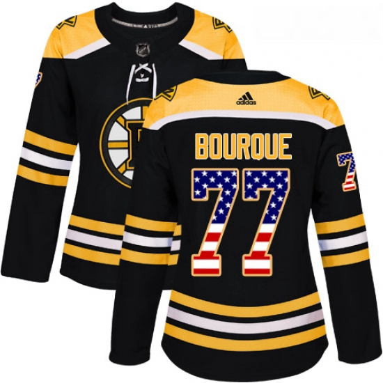 Womens Adidas Boston Bruins 77 Ray Bourque Authentic Black USA Flag Fashion NHL Jersey