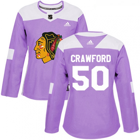 Womens Adidas Chicago Blackhawks 50 Corey Crawford Authentic Purple Fights Cancer Practice NHL Jersey