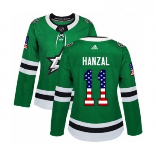 Home>NHL>Dalls Stars>Women>Womens Adidas Dallas Stars 11 Martin Hanzal Authentic Green USA Flag Fashion NHL Jersey
