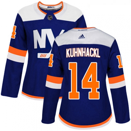 Home>NHL>New York Islanders>Women>Womens Adidas New York Islanders 14 Tom Kuhnhackl Premier Blue Alternate NHL Jersey