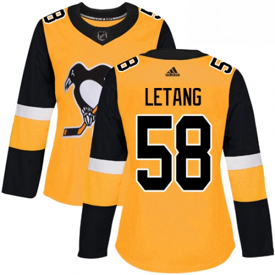 Womens Adidas Pittsburgh Penguins 58 Kris Letang Authentic Gold Alternate NHL Jersey