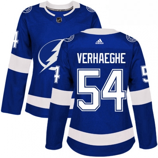 Home>NHL>Tampa Bay Lightning>Women>Womens Adidas Tampa Bay Lightning 54 Carter Verhaeghe Authentic Royal Blue Home NHL Jersey