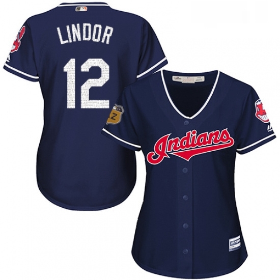 Home>MLB>Cleveland Indians>Women>Womens Majestic Cleveland Indians 12 Francisco Lindor Authentic Navy Blue 2017 Spring Training Cool Base MLB Jersey
