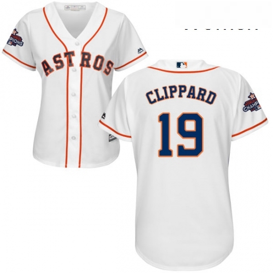Womens Majestic Houston Astros 19 Tyler Clippard Authentic White Home 2017 World Series Champions Cool Base MLB Jersey