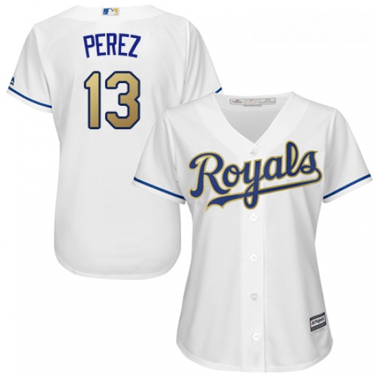 Home>MLB>Kansas City Royals>Women>Womens Majestic Kansas City Royals 13 Salvador Perez Authentic White Home Cool Base MLB Jersey