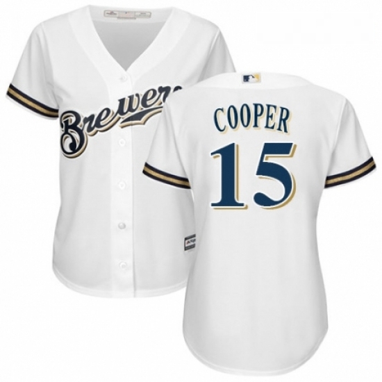 Womens Majestic Milwaukee Brewers 15 Cecil Cooper Replica Navy Blue Alternate Cool Base MLB Jersey