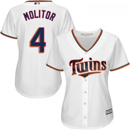 Womens Majestic Minnesota Twins 4 Paul Molitor Authentic White Home Cool Base MLB Jersey