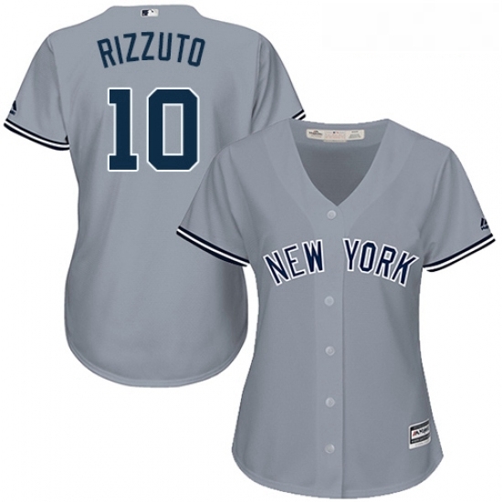 Womens Majestic New York Yankees 10 Phil Rizzuto Replica Grey Road MLB Jersey