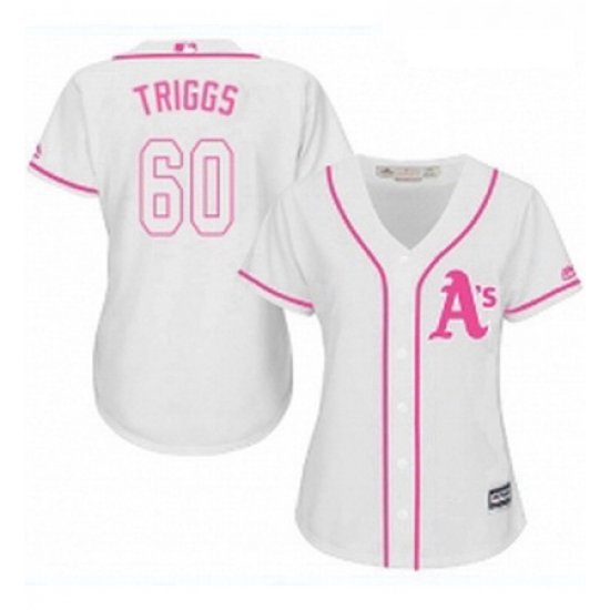 Womens Majestic Oakland Athletics 60 Andrew Triggs Replica White Fashion Cool Base MLB Jersey